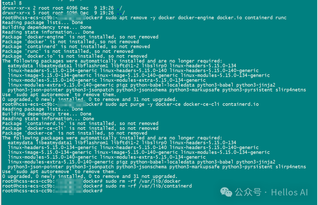 sudo apt purge -y docker-ce docker-ce-cli containerd.io
