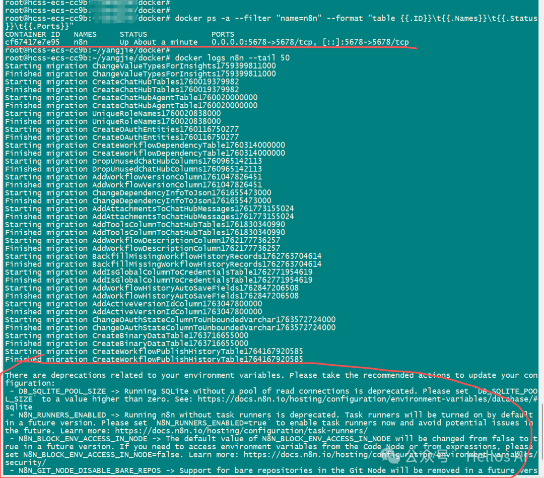 这里我选择禁用https安全性,所以我需要停止并删除n8n容器,然后重启启动它,如: