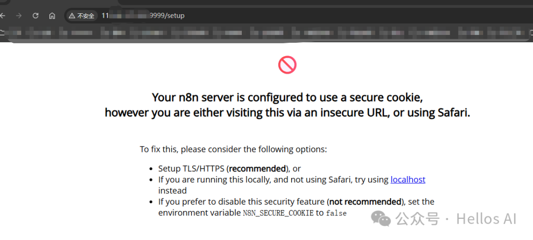 这里n8n要求配置https证书或者是我来禁用n8n的https安全配置,所以我还要改如下的配置: