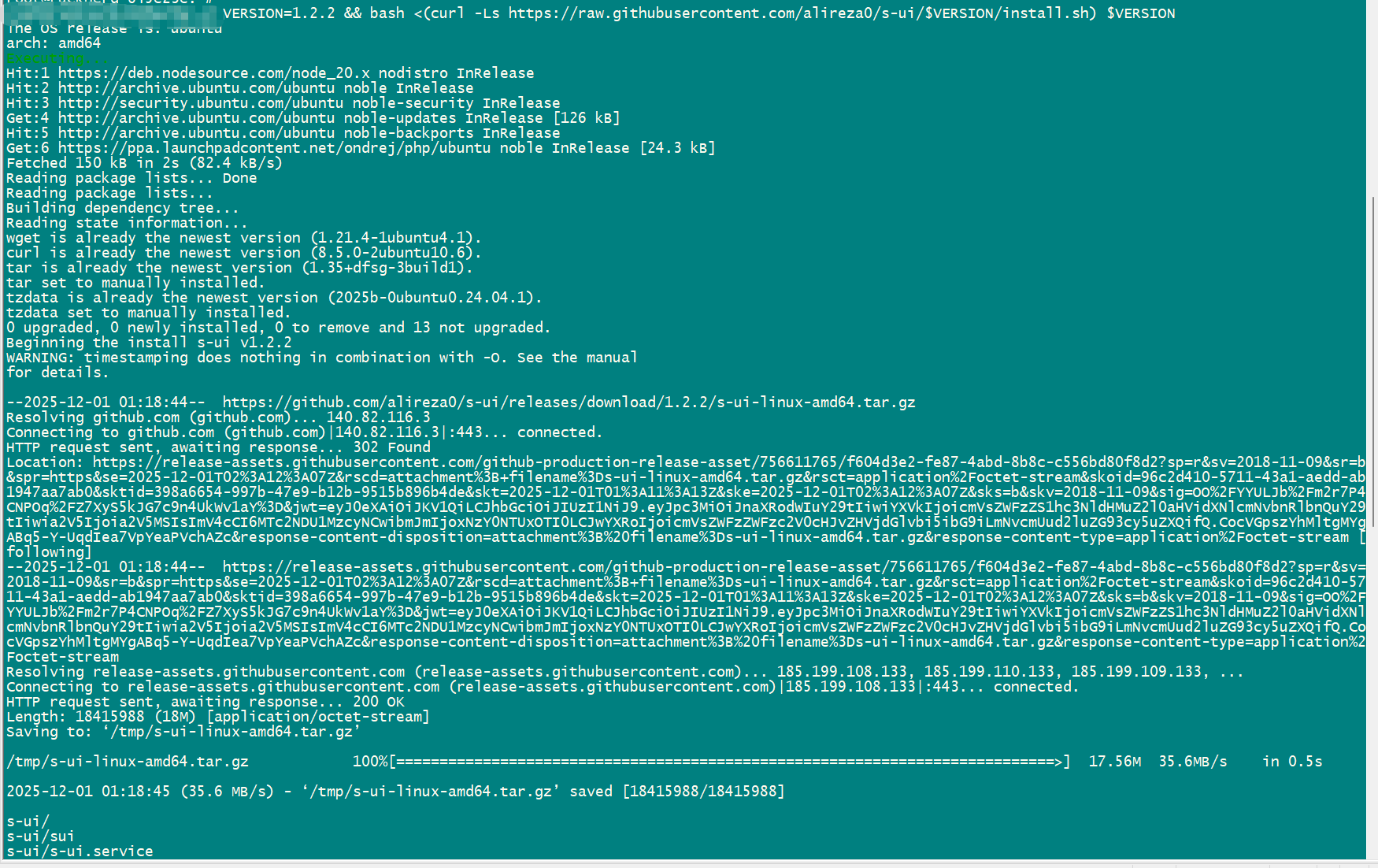 VERSION=1.2.2 && bash <(curl -Ls https://raw.githubusercontent.com/alireza0/s-ui/$VERSION/install.sh) $VERSION如下截图:
