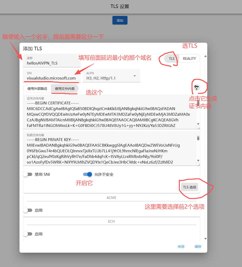 这里需要再次添加一个TLS设置,请详细看添加的截图