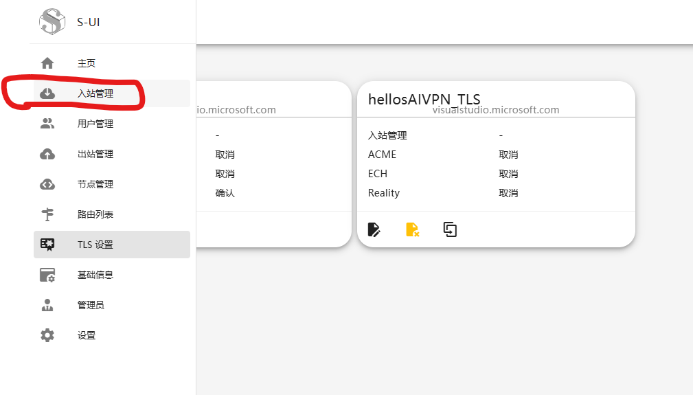 TLS:本意就是传输层安全,就是相当于是设置传输协议! 点击左侧菜单"TLS设置"