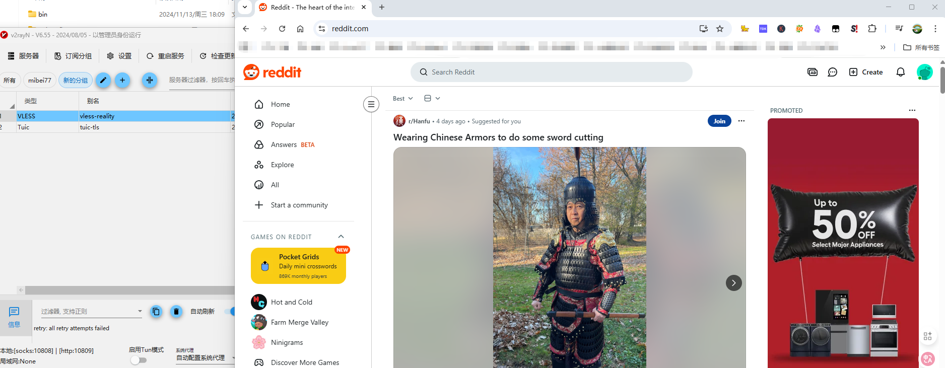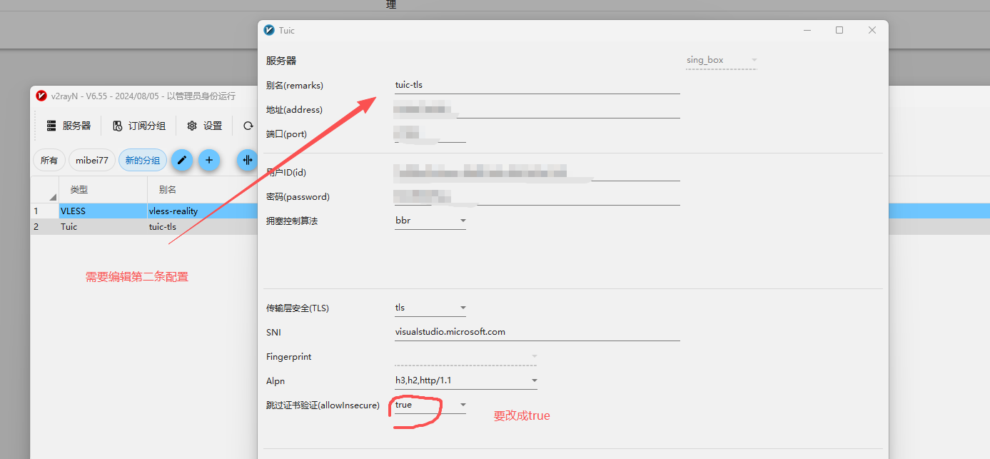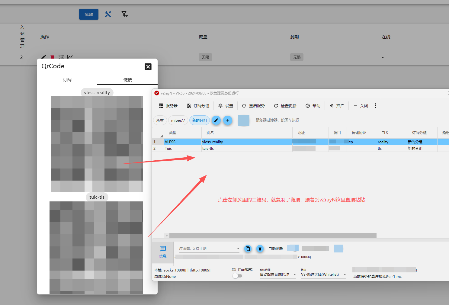 例如,我点击上面第二个图片中的vless-reality, 获得链接后,我把自己搭建的梯子配置到v2rayN中!