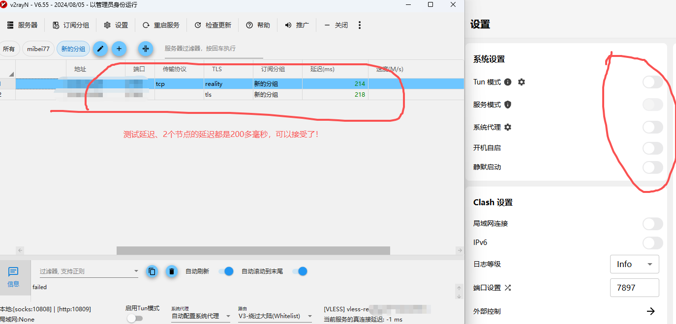 测试节点延迟:选中某节点后,鼠标右键,按ctrl+r 就可以进行测试了